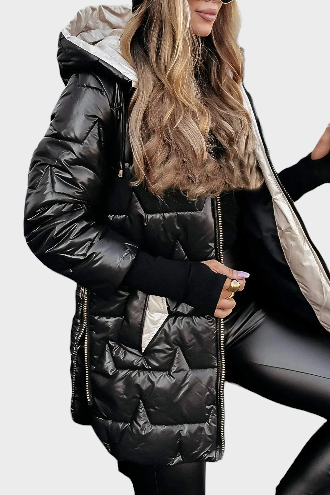 Елегантно пухено зимно яке с качулка – Стил и комфорт в едно