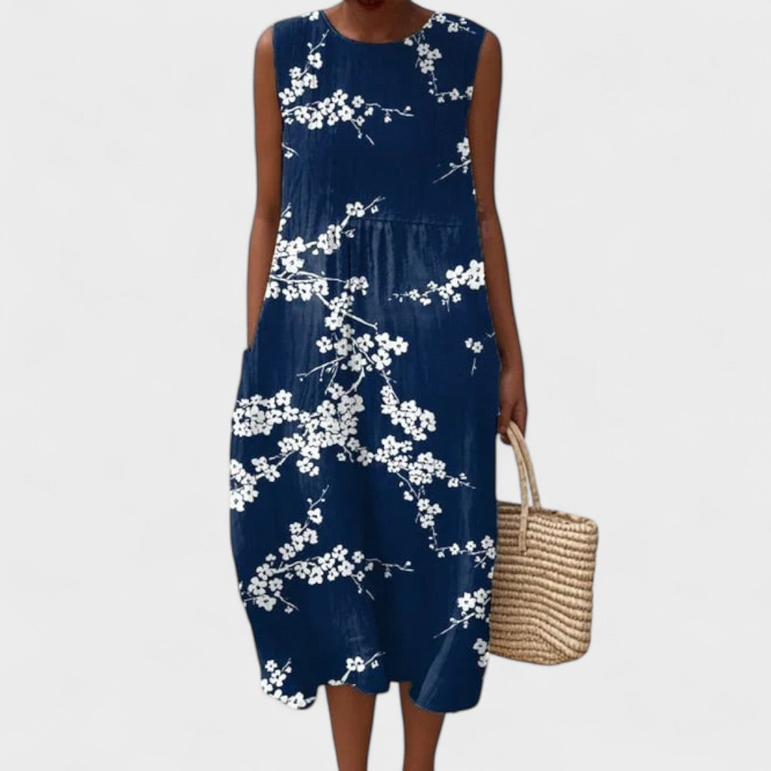 Тази лека и въздушна рокля перфектно комбинира стил и практичност, давайки ви свобода на движение и изискан вид във всички поводи. Нейният свободен крой и цветен десен я правят идеален избор за плажа, разходка из града или летни срещи.