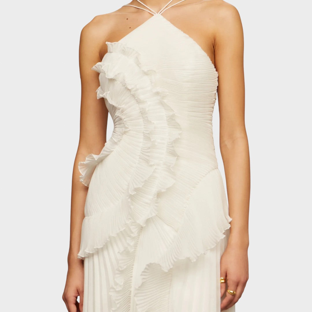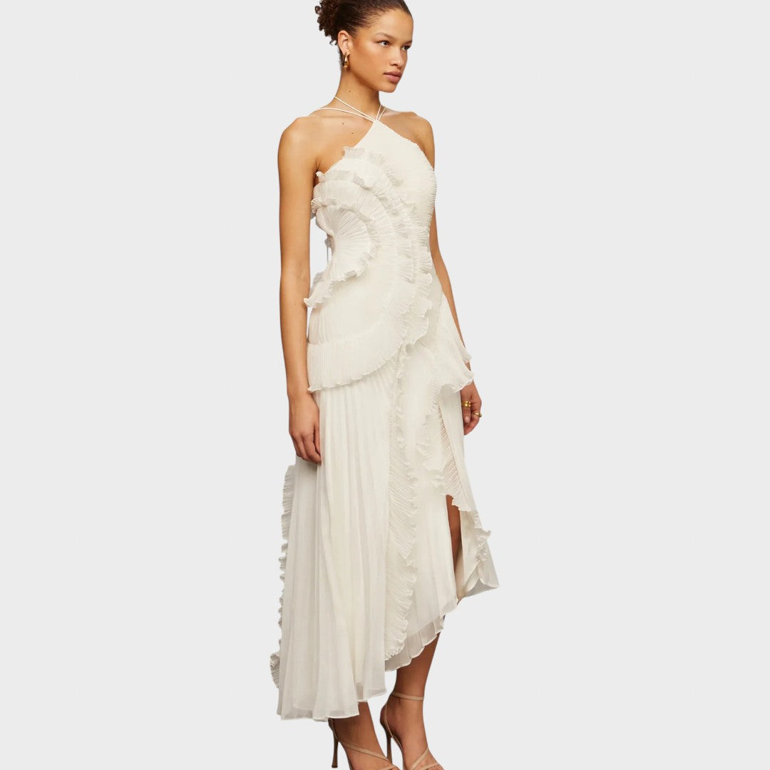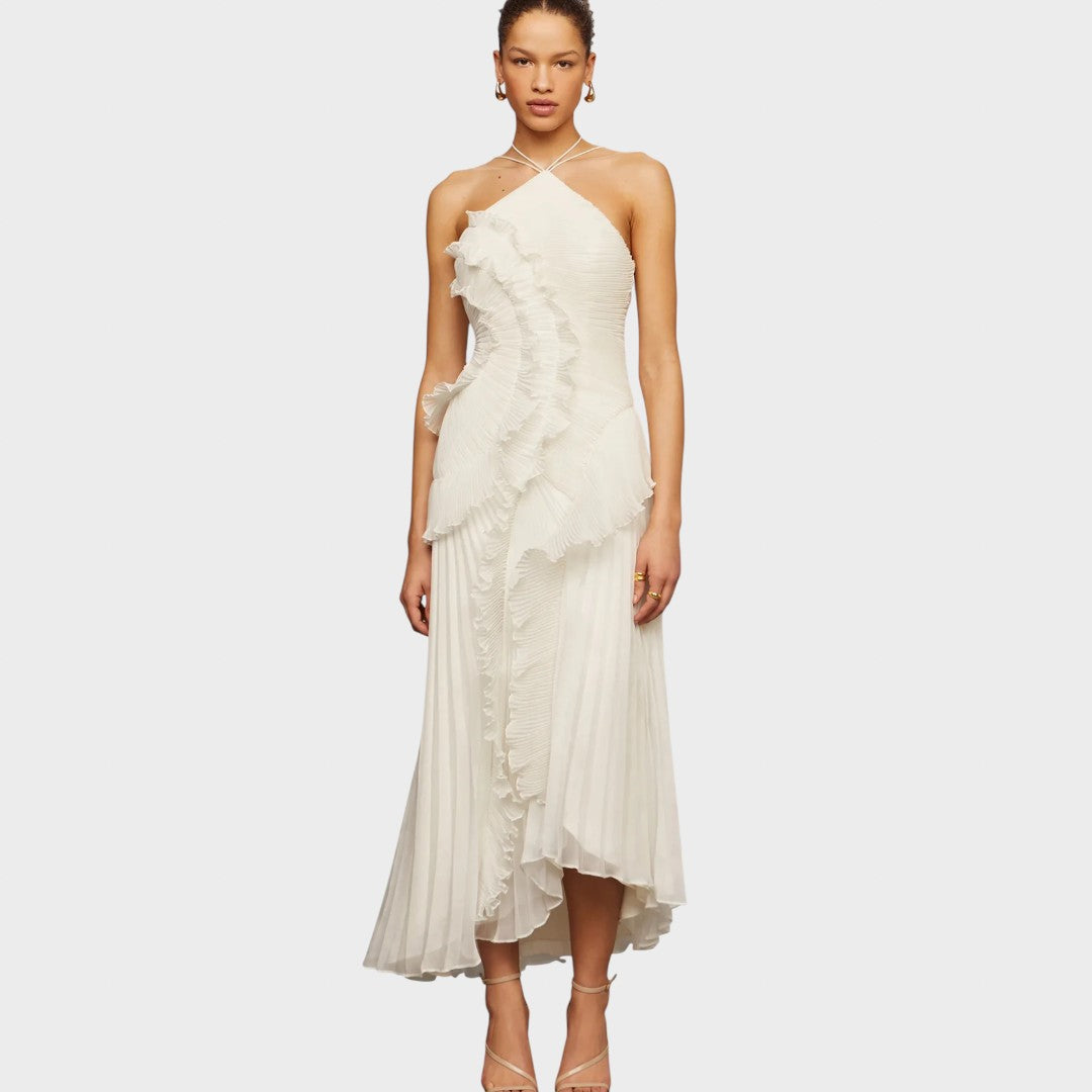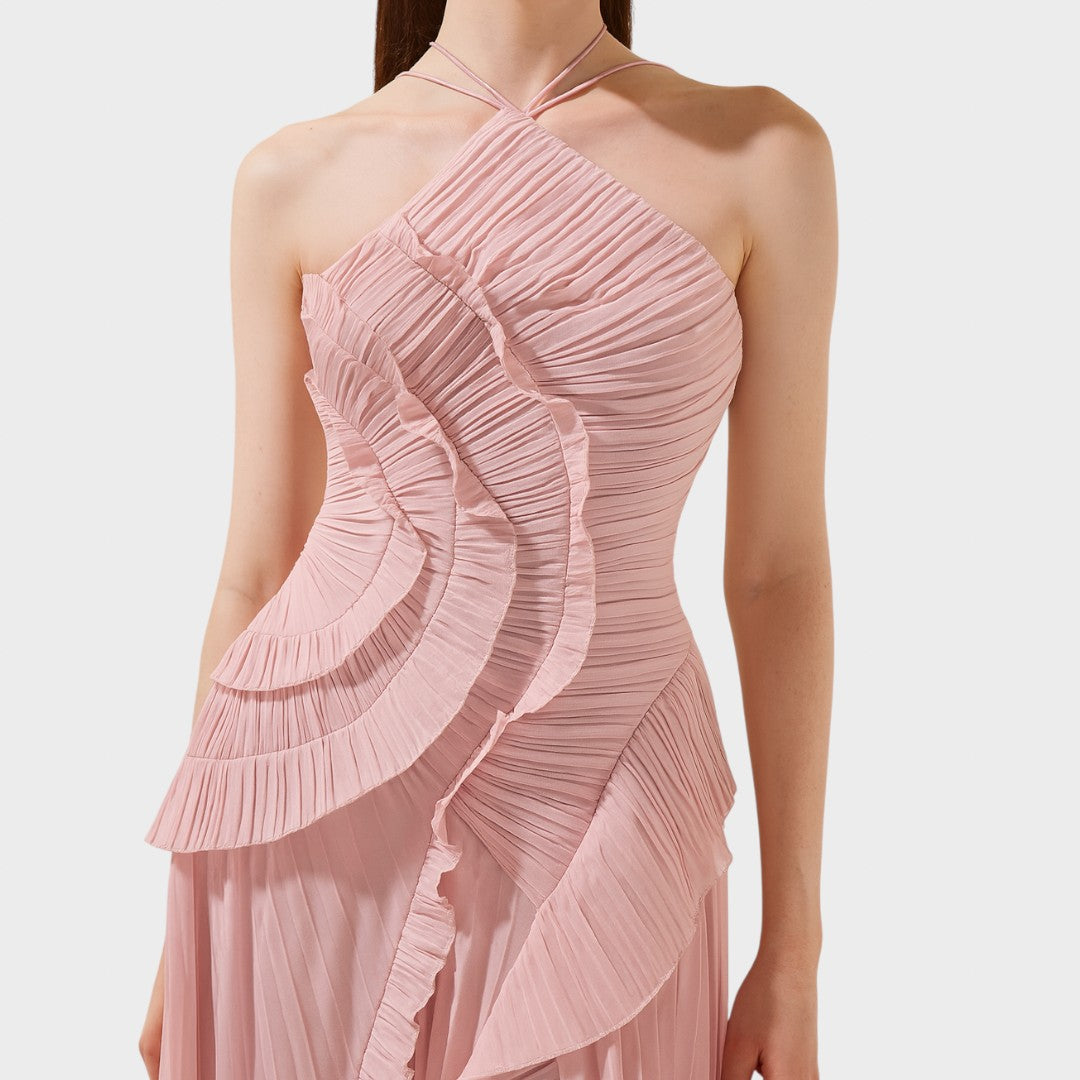 Роклята с волани носи игрив и лек вид, който завладява от първия поглед. Създадена е за моменти, в които искате да изглеждате нежно, елегантно и без усилие привлекателно.