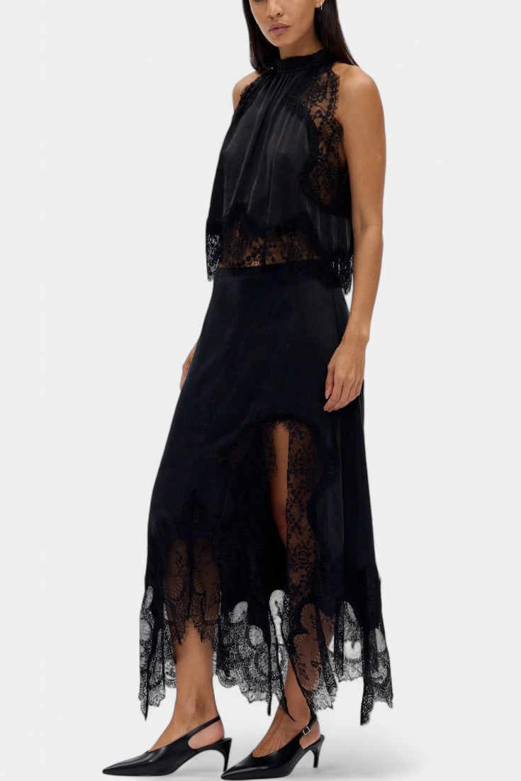 Нада Миди Пола с Дантелени Детайли и Асиметричен Подгъв
