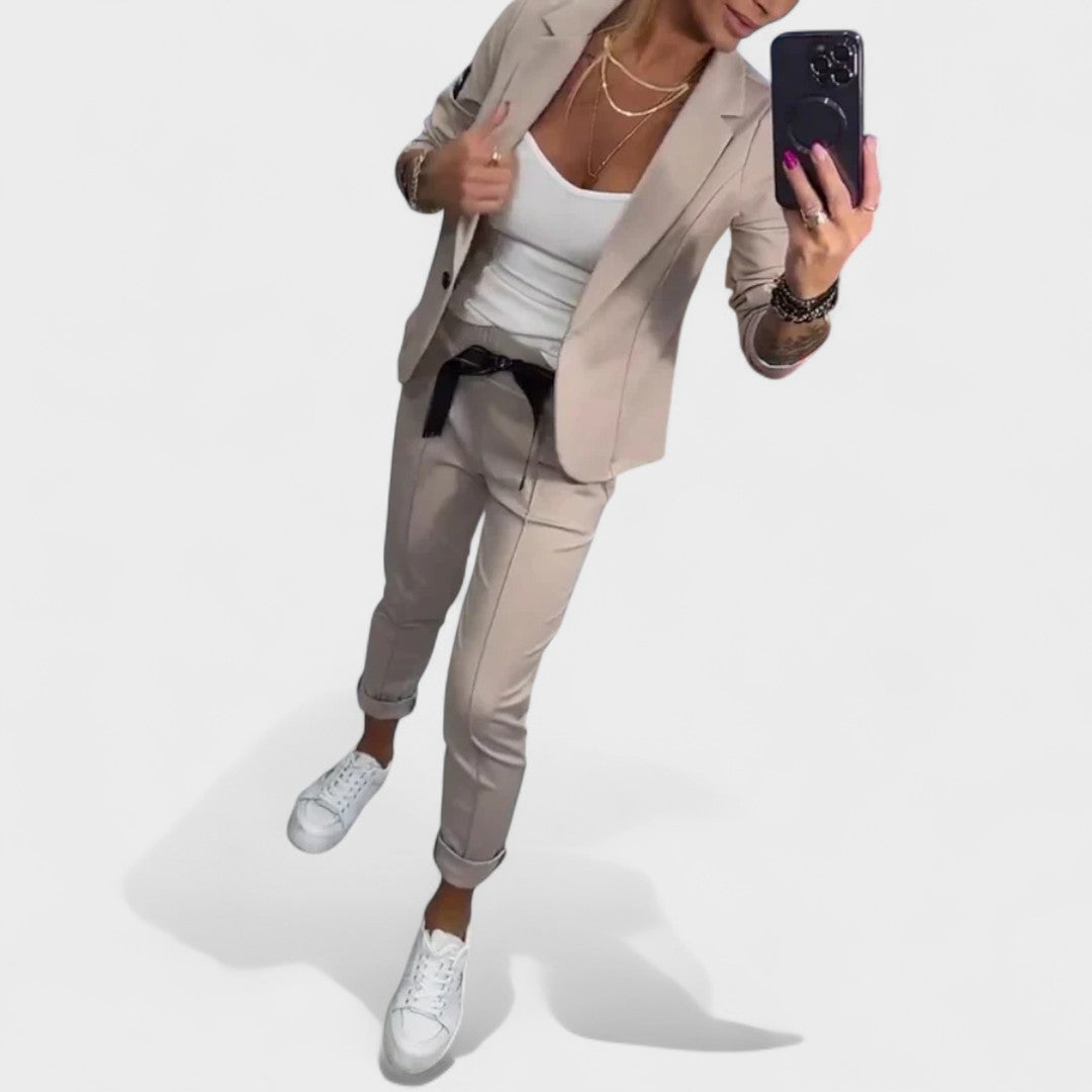 Ника – Персонализиран комплект: мек сако и широки панталони